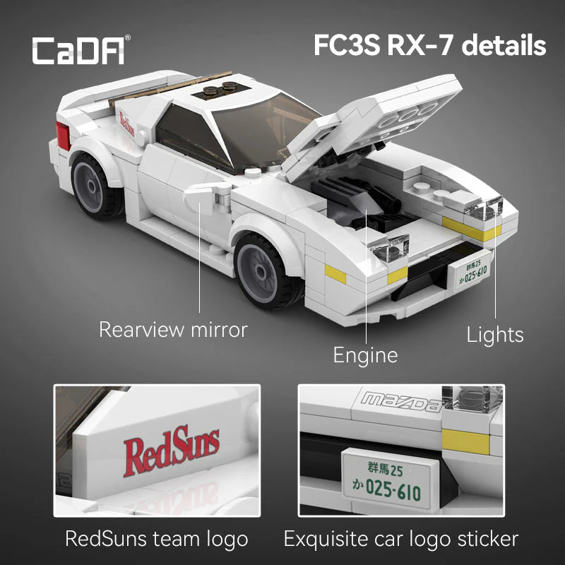 Recreate the iconic Mazda RX-7 FC3S from the legendary anime Initial D with the CaDA C55012W 1:24 scale building block model. This set features detailed exterior design, functional wheels, and authentic decals, delivering a realistic and enjoyable assembly experience. Perfect for anime fans, collectors, and street racing enthusiasts, it serves as both a fun building project and a striking display piece.